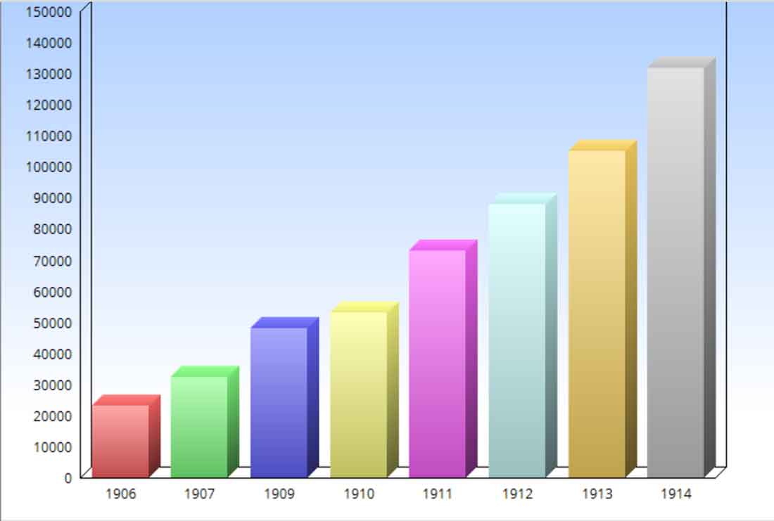 It became obvious after 1903, when cars had to be registered, that they were here to stay. Official registration figures were: